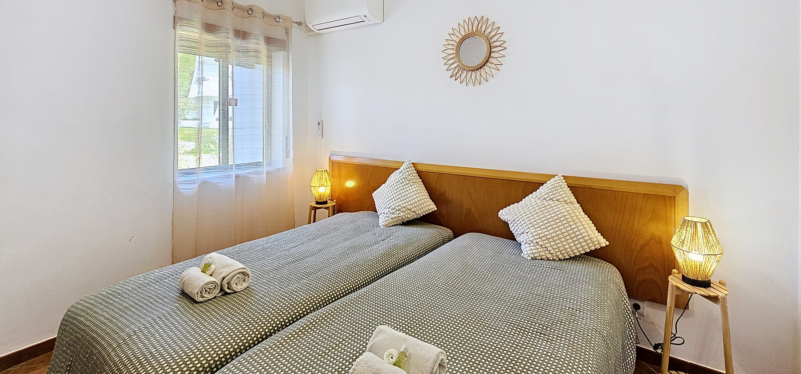 Apartamento ideal para férias em família ou para um casal que procura tranquilidade e descanso. Dispõe de um quarto com duas camas individuais, uma cozinha equipada, uma sala ampla e uma agradável varanda.