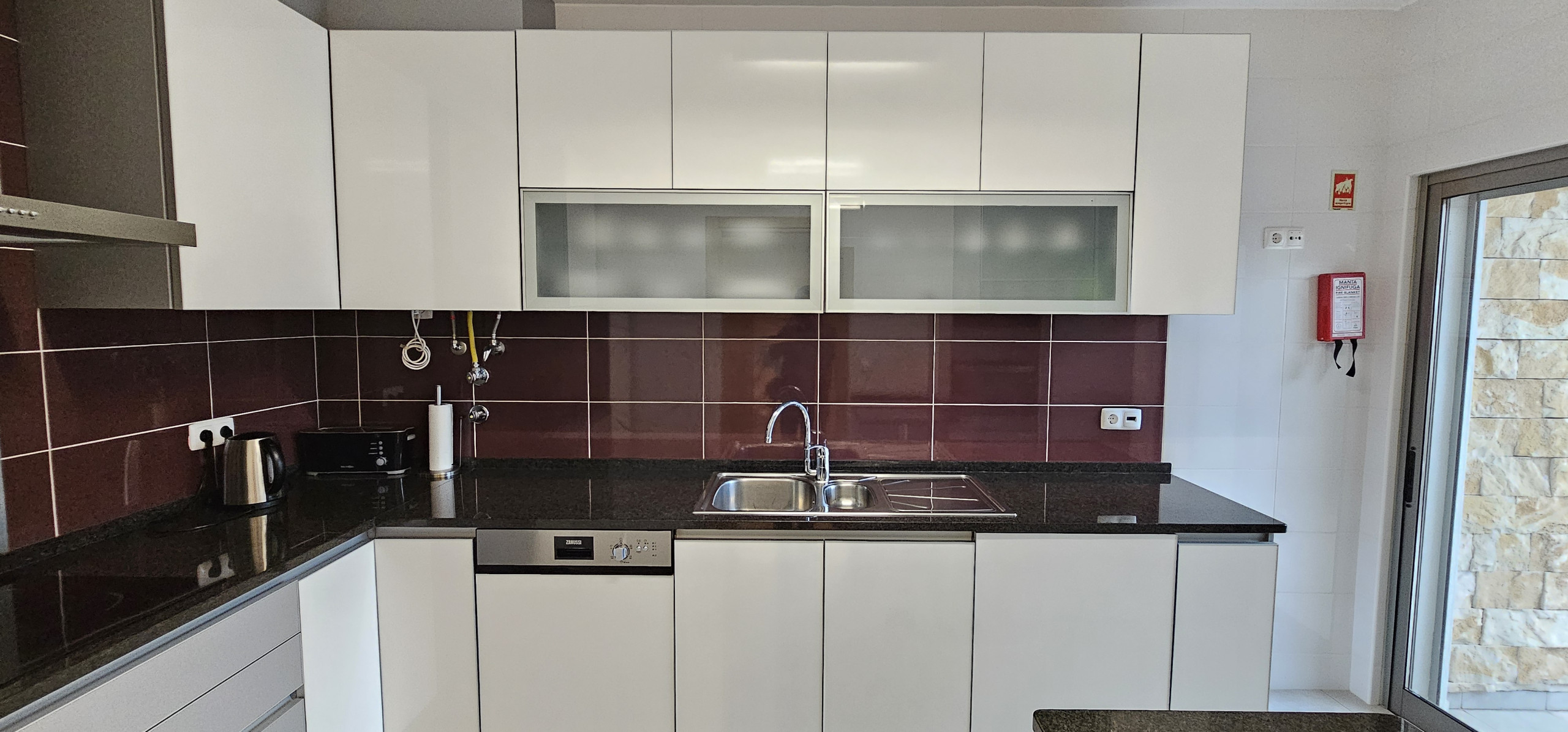 A cozinha, está equipada com frigorífico, microondas, forno, máquina de lavar louça, louça/talheres, utensílios/cozinha, fritadeira, torradeira e jarro eléctrico.