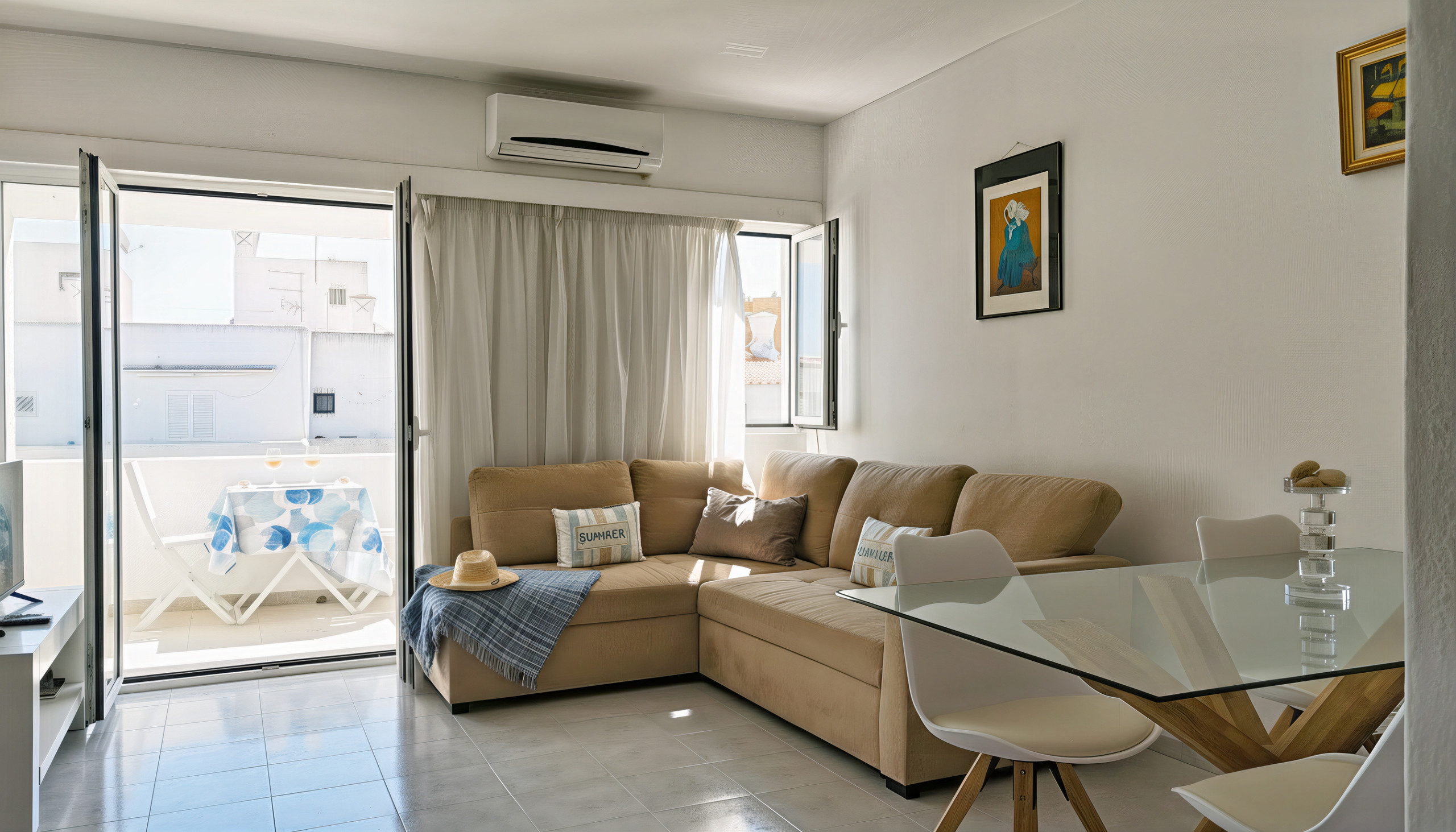 Sala de estar confortável com ar condicionado